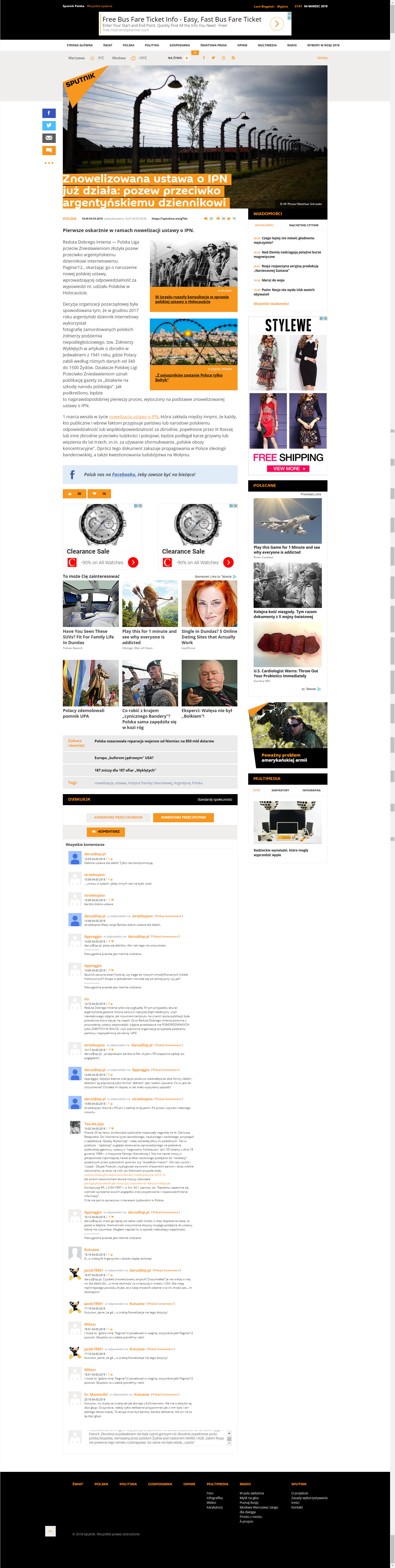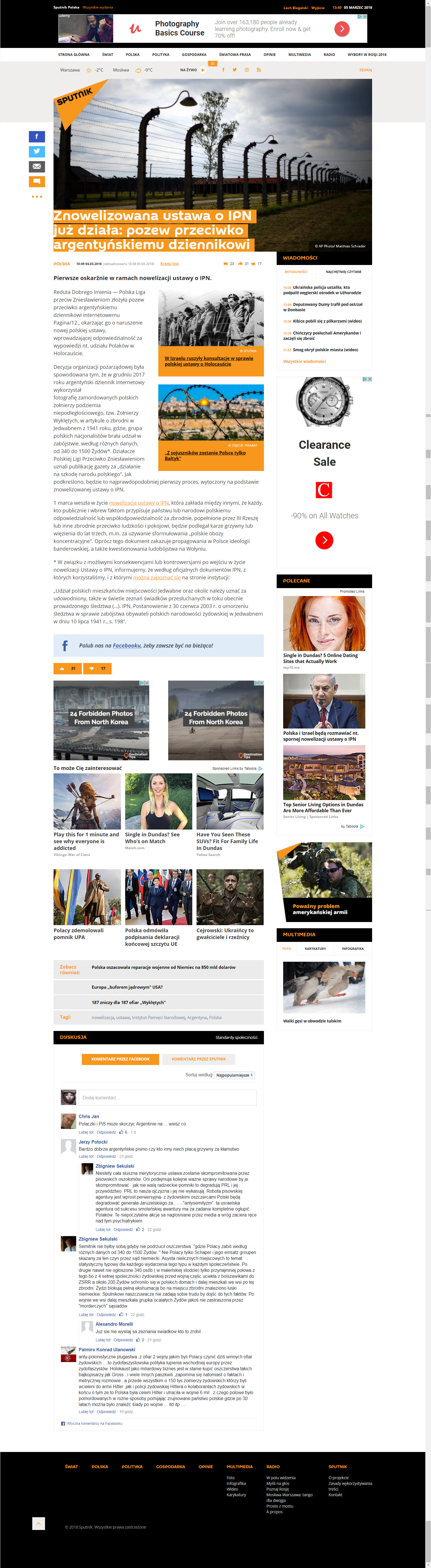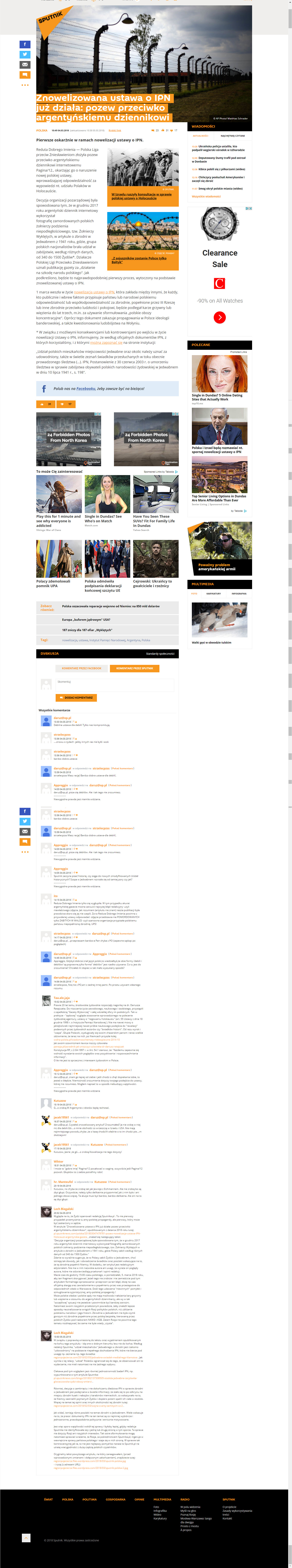 W atrykule „Znowelizowana ustawa o IPN już działa: pozew przeciwko argentyńskiemu dziennikowi”, opublikowanym z datą 4 marca 2018 roku tutaj: https://pl.sputniknews.com/polska/201803047479781-pozew-nowelizacja-ustawa-IPN-Holocaust-argentynska-gazeta , znalazł się następujący tekst: