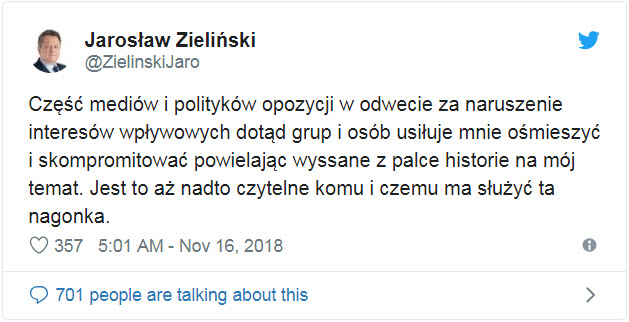 Panie Zieliński, faktom się nie da zaprzeczyć. Fakty to nie opinie. Poza tym, „jest aż nadto czytelne” czemu służyło „naruszenie [przez Pana] interesów wpływowych dotąd grup i osób”. Dla utrzymania własnej pozycji i z powodów czysto politycznych (partyjnych) wycinał Pan ludzi, którzy przez lata ciężko pracowali i awansowali w podległych Panu służbach. Wymienił ich Pan na swoich przydupasów bo najwidoczniej czuje się Pan zagrożony. Ludzie uczciwi i kompetentni nie muszą się tak czuć bo nic im nie grozi. Taka jest „nie wyssana z palca” prawda.