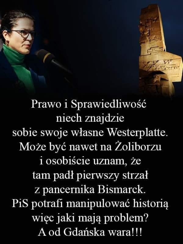 Widzę, że frau Dulkiewicz już się czuje udzielnym gubernatorem Wolnego Miasta Gdańska, zapominając, że i ona i Gdańsk podlegają pod demokratycznie wybrany rząd RP. Może należy jej odpowiedzieć: „Od Polski i polskich miast wara!” Miałbym co do tego pewne wątpliwości, gdyby nie to, że kandydatura Dulkiewicz była masowo popierana przez środowisko, które uważam za agenturę niemiecką na Polskę. Dotyczy to również wszystkich uczestników tego środowiska, którzy się pod tym wpisem masowo ślinią i dostają z zachwytu orgazmu. [Źródło]