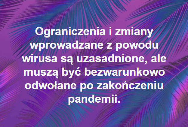 Wszystkie, bez wyjątku i bezzwłocznie !!! Całkowity powrót do stanu prawnego z grudnia 2019 r. Całkowity reset. Wybory też należy do tego czasu odłożyć, tak aby nie trzeba ich było powtarzać i podwójnie za to płacić.