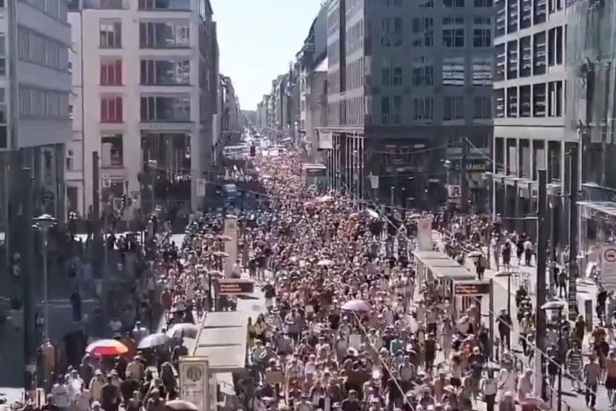 Niemcy nie wierzą w pandemią. Manifestacja w Berlinie. (Fot. screen/TT)