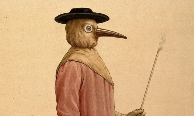 Dżuma dymienicza powracała w Europie od wieków. W XVII-wiecznej Europie lekarze opiekujący się ofiarami dżumy wierzyli, że rozprzestrzenia się ona poprzez zatrute powietrze zwane miazmą, które może powodować zachwianie równowagi w płynach ustrojowych lub humorach. Aby się chronić, lekarze nosili długi płaszcz pokryty pachnącym woskiem, czapkę i rękawiczki wykonane z koziej skóry oraz maskę z 6-calowym ptasim dziobem wypełnionym między innymi ziołami, cynamonem, mirrą i perfumami. Nosili też długi kij, którym mogli szturchać lub odeprzeć ofiary. Oczywiście wszystkie te głupie stroje sprawiały, że wyglądali śmiesznie.