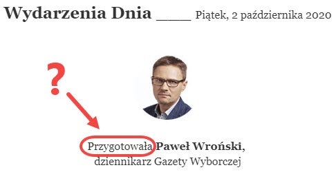 (Nagłówek z elektronicznej rozsyłki Wyborczej.pl z dnia 2 października 2020 r.)