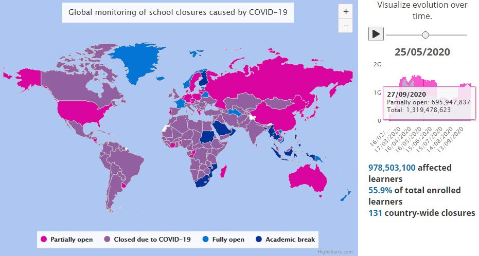 „Ponieważ pandemia COVID-19 rozprzestrzeniła się na cały świat, większość krajów ogłosiła tymczasowe zamknięcie szkół, co dotknęło ponad 91 procent uczniów na całym świecie… Nigdy wcześniej tak wiele dzieci nie było jednocześnie pozbawionych edukacji…”
