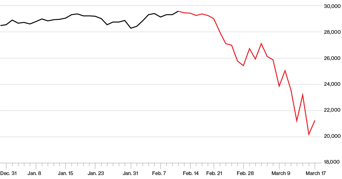 Dow Jones Industrial Average grudzień 2019 – marzec 2020