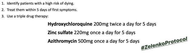 - Protokół dr V. Zelenko (Stany Zjednoczone, Nowy Jork): https://internetprotocol.co/covid-19/2020/07/21/yale-harvard-professors-support-zelenkos-protocol/