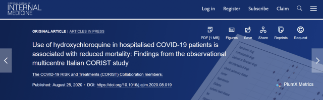 Zatem hydroksychlorochina w leczeniu zakażenia COVID-19 daleka jest od bycia jedynie interwencjami czy badaniami zespołu profesora Didier Raoult w IHU-Méditerranée w Marsylii. W rzeczywistości, w niedawnym American Journal of Medicine (AJM) z 6 sierpnia 2020 r., https://www.amjmed.com/article/S0002-9343(20)30673-2/fulltext (plik PDF do pobrania) przedstawiono schemat terapeutyczny ponownie, z hydroksychlorochiną w dobrym i właściwym miejscu, połączoną z azytromycyną: