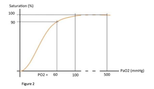 Jak widać, zależność ta nie jest liniowa, ale reprezentowana przez sigmoidalną krzywą. Oznacza to, że spadek SaO2 (odzwierciedlony przez SpO2) o 10% (100 do 90%) oznacza spadek PaO2 o 40 mmHg (100 do 60 mmHg)!