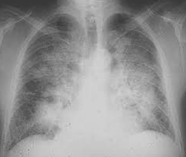 Zmiany wyglądające jak zamarznięta, matowa szyba są typowe dla ARDS, a nie dla jakiejś szczególnej przyczyny.