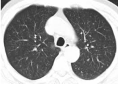 Pęcherzyki płucne są wypełnione powietrzem, (Kolor czarny na obrazie tomografii komputerowej.