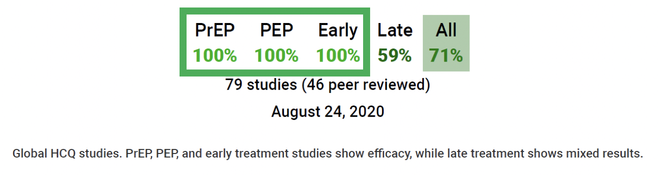 Badania przemawiające za stosowaniem hydroksychlorochiny na bardzo wczesnym etapie zakażenia COVID-19 są liczne i poważne i dalekie od ograniczania się do krytykowanych (i wątpliwych) badań zespołu profesora Didiera Raoulta: https://hcqtrial.com . 79 badań, w tym 46 wzajemnych ocen.