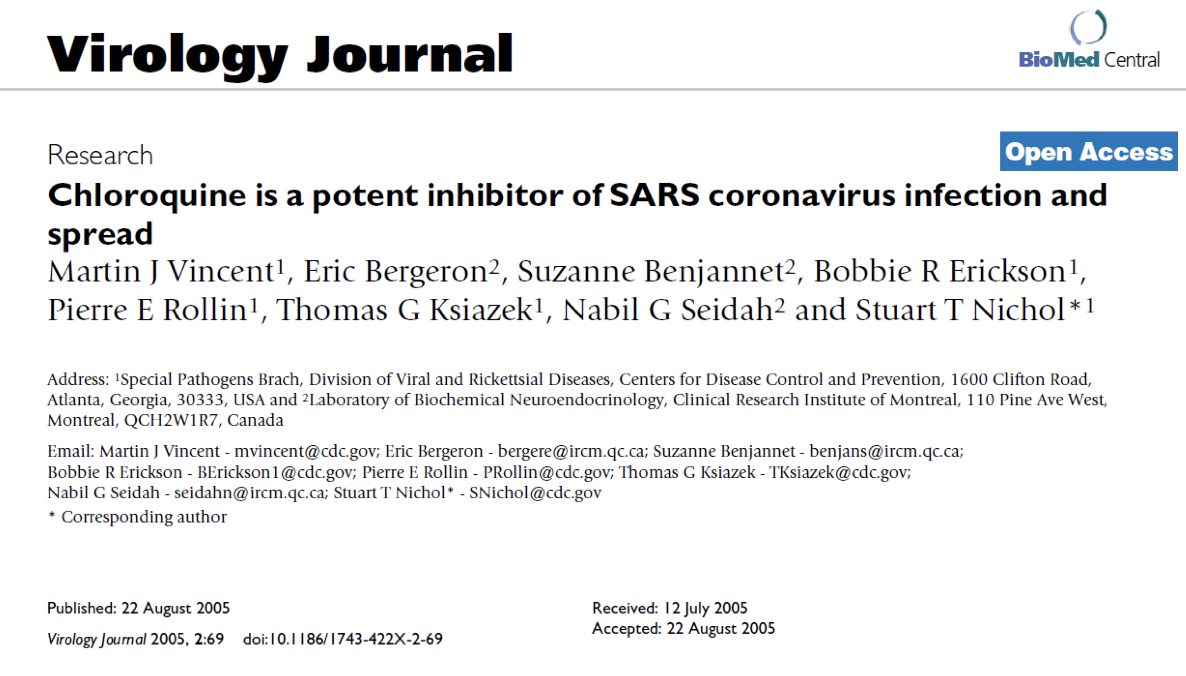 Stosowanie hydroksychlorochiny w infekcjach wirusowych wywołanych przez SARS opisano in vitro od 2005 roku: https://www.ncbi.nlm.nih.gov/pmc/articles/PMC1232869/