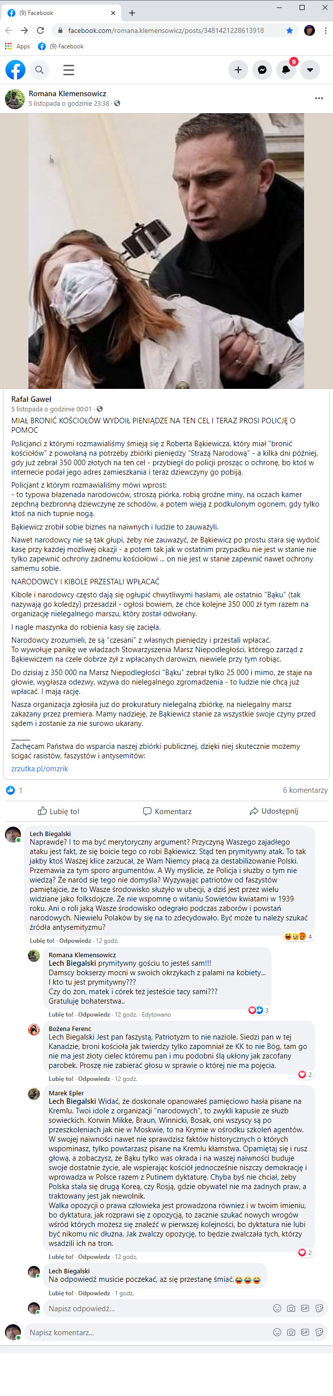 Nie chciałem zakłócać Marszu Niepodległości, mając nadzieję, że będzie on miał przebieg pokojowy i poważny, (jak w kilku poprzednich latach), więc odłożyłem dalszą dyskusję na „po marszu”. Jak się okazało, marsz pokojowo się nie zakończył, były jakieś prowokacje, które są obecnie wyjaśnianie przez organizatorów. Natomiast nasza suwalska emisariuszka warszawsko-białostocko-suwalskiego „kodziarstwa” już publikuje zdjęcia z marszu. Oczywiście są to zdjęcia wyłącznie pokazujące jak okropni są ci „faszyści” i „naziole” narodowcy, zupełnie odwrotnie niż te wspaniałe kobiety, które niedawno robiły zadymy domagając się prawa do zabijania nienarodzonych dzieci. Nie jest to pierwsza wyprawa fotograficzna tej pani, a poprzednie wyraźnie wskazują na to, że jej zdjęcia są tendencyjne, prawdopodobnie robione są na polityczne zamówienie jednej ze stron konfliktu, jaki ma miejsce w Polsce. Widać taka u niej „optyka”, choć 90% marszu była godna i spokojna.