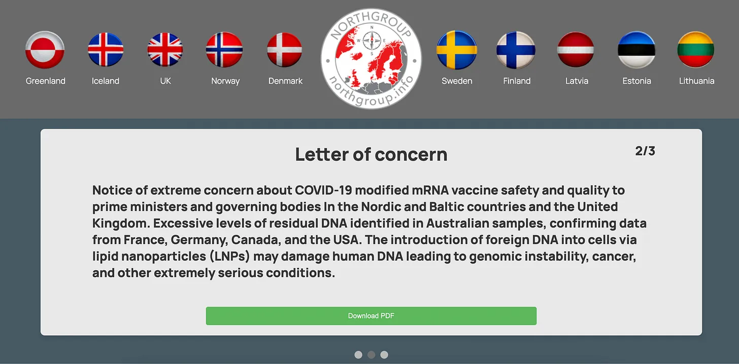 Zawiadomienie o skrajnych obawach dotyczących bezpieczeństwa i jakości szczepionki mRNA modyfikowanej przeciwko COVID-19 skierowane do premierów i organów rządowych krajów nordyckich i bałtyckich oraz Zjednoczonego Królestwa.