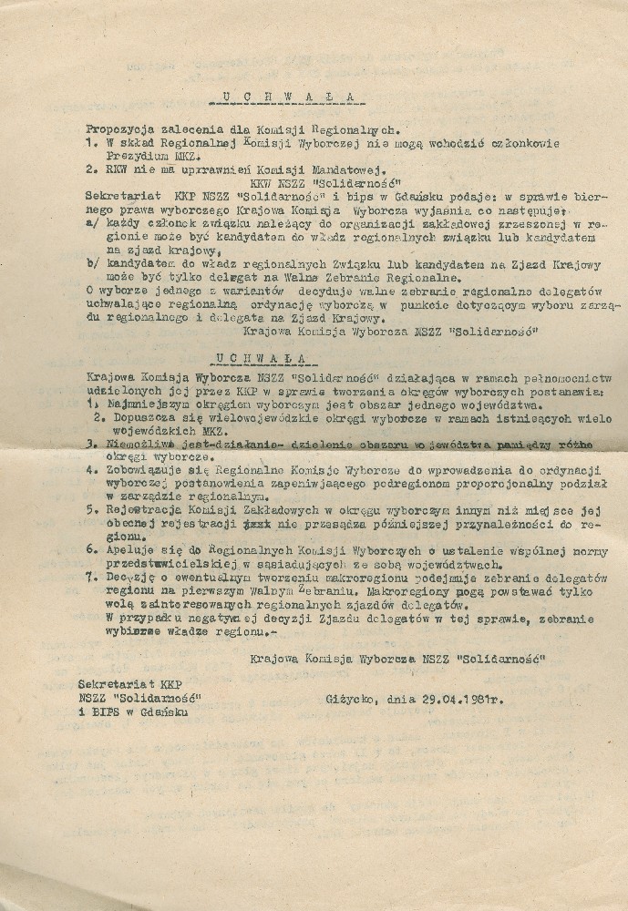 Uchwała KKW NSZZ „Solidarność”