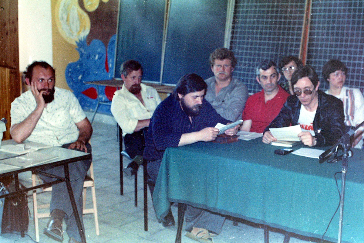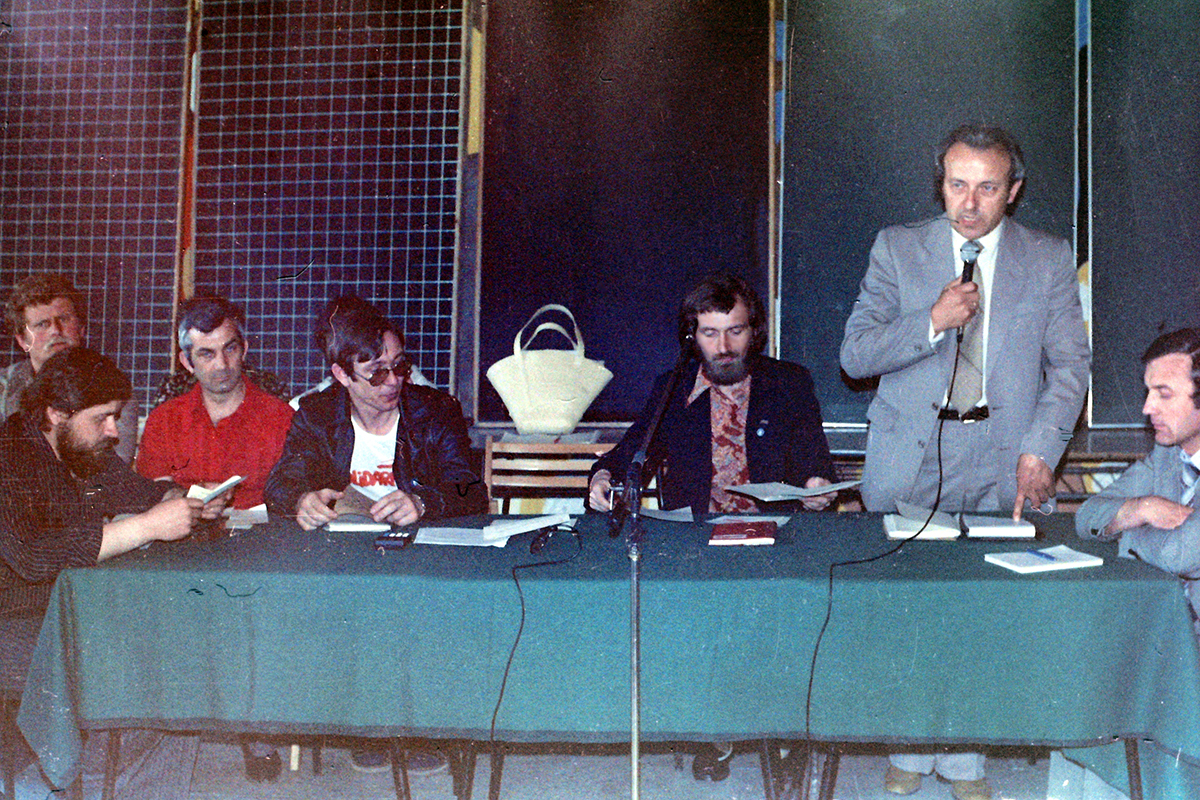 Od lewej do prawej: Romuald Łanczkowski, NN, Jarosław Słabiński, Henryk Buraczewski, Jarosław Kozakiewicz, Halina Sarul, Jan Jarocki, Bożena Mrozinkiewicz